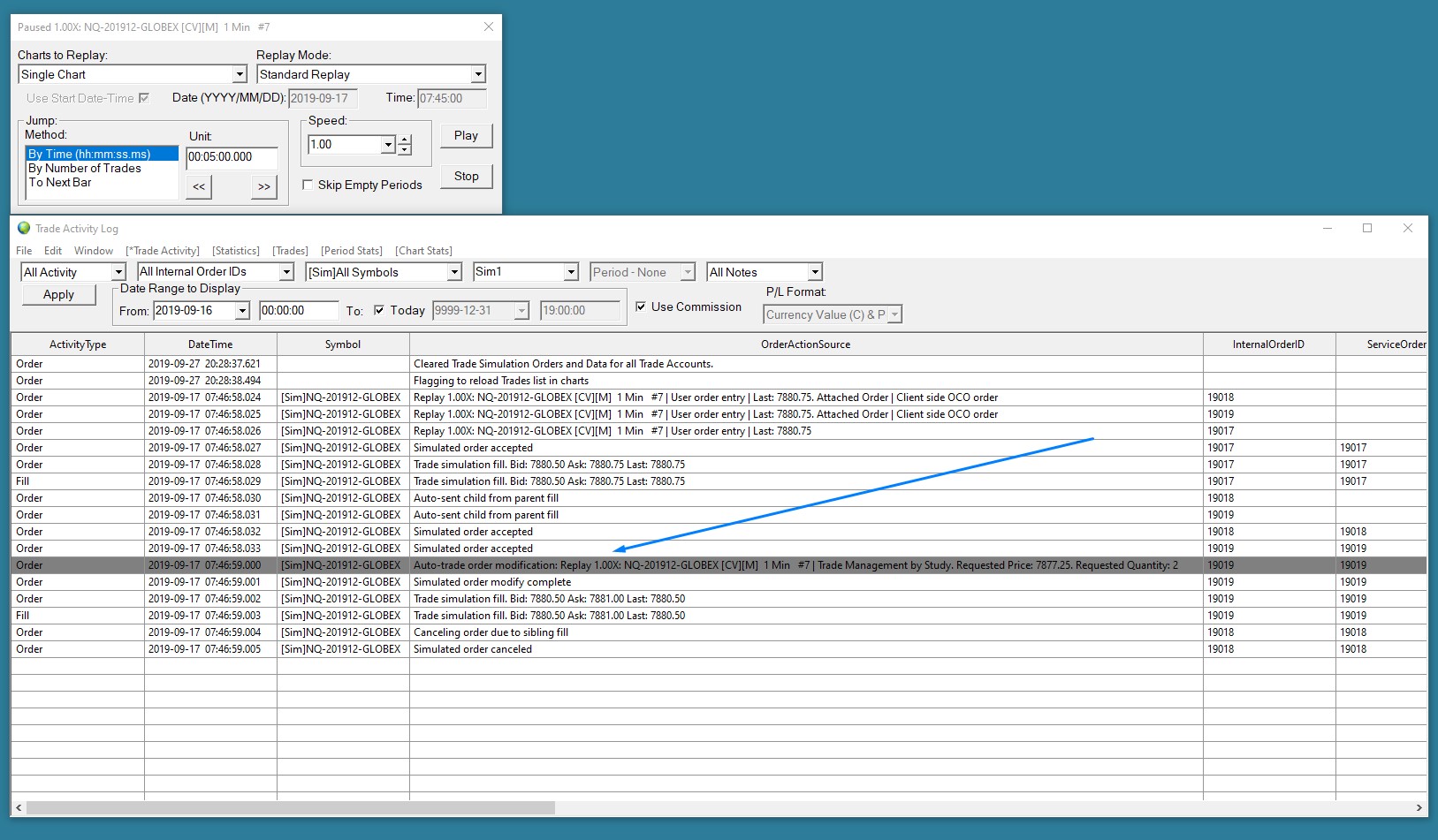 I have uploaded the trade activity log for a replay I did for Sep 17, 2019. The line that states Auto trade order modification states that it was initiated by the Trade Management Study in chart #7, which is the same chart I used to do the replay. I also attached the a screenshot of the chart replay where I got stopped out at 4 ticks only. Do you provide phone support during the weekend? Date Time Of Last Edit: 2019-09-28 04:29:50