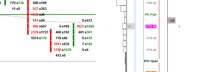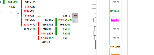 Hello - I have been searching the forum, my Sierrachart platform, and the internet in general looking for a way to put the bid/ask spread right next to the developing number bars. Currently I have the Chart Trading DOM open and have the bid/ask show up on there, but I don't use the Chart Trading DOM and it's a waste of precious real estate on my screen. I might not have articulated this well, but I have done some fancy MS Painting to illustrate my point. If this capability is already available, pointing to me the manual to configure it would be appreciated. :] |