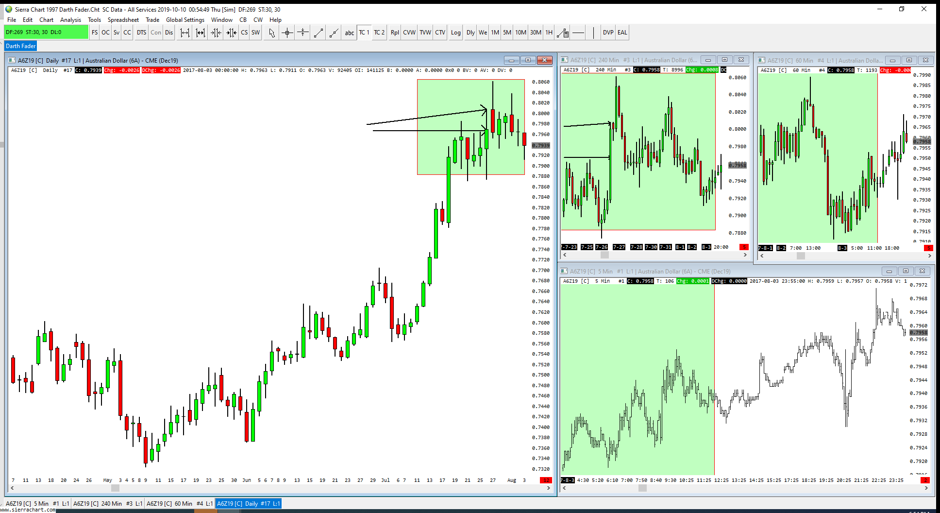 Hi again, Sorry but this isn't getting me any closer... see the attached image where Ive highlighted a big gap on the daily chart, however not there is no gap on the 240 minute chart, or the other intraday charts. What am I doing wrong here? Thanks again, Mitch http://www.sierrachart.com/image.php?Image=157068689367.png |