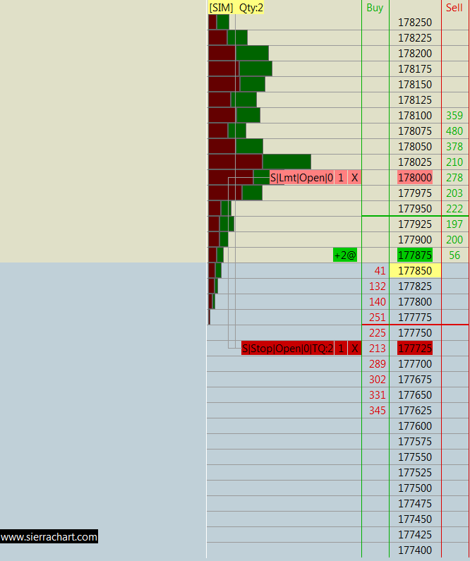 Hi could you please help me with setting up the DOM, I'm connected to CTS. 1. The PnL display for an open trade shows the total pnl for all contracts, can it be changed to show pnl per contract? 2. How to move the volume profile to the far right of DOM ? 3. There is no confirmation required when placing new trade but when I adjust the child orders after entry I need to confirm, how do I disable that? 4. I have the ES showing in the DOM it does not show the decimal point, is there a way to make it show? and is there a way to bold the last few digits and make it larger font? For example instead of 177875 can it show 1778.75 (with the bold chars one size larger would be even better) to make it easier to pick out. Thanks http://www.sierrachart.com/image.php?l=1387246664500.png |