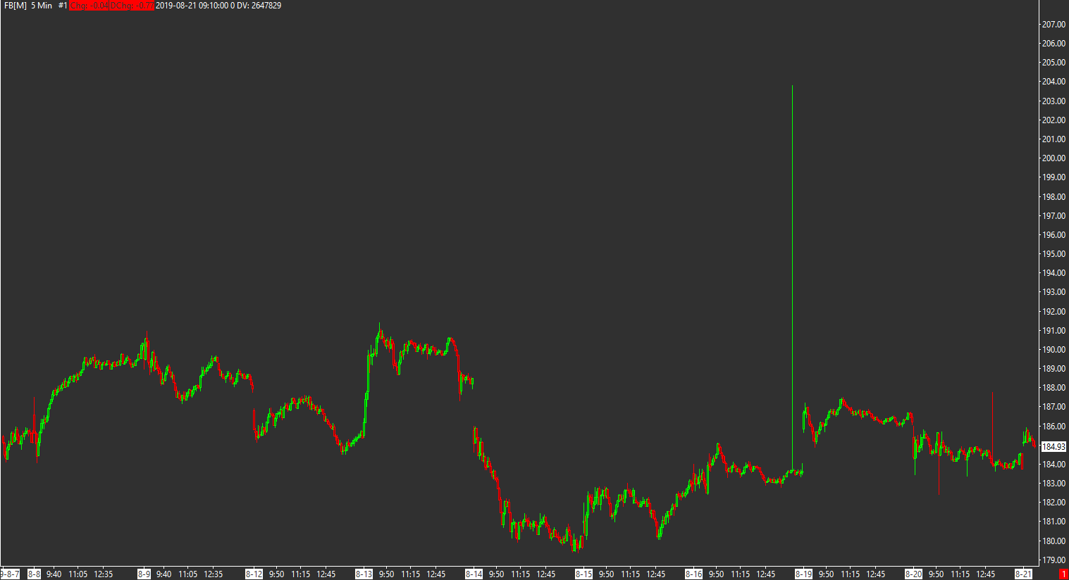 Hi, I've been talking with barchart support after finding questionable data. A few of the instances are attached below. The member of their staff confirmed that they do not have these prints in their data. I've tried scrubbing the data with delete>download but nothing seems to work. Please advise with what I should do going forward. Thanks SPY volume discrepancies http://www.sierrachart.com/image.php?Image=1571077959172.png http://www.sierrachart.com/image.php?Image=1571078032190.png FB price discrepancy http://www.sierrachart.com/image.php?Image=1571078339255.png |