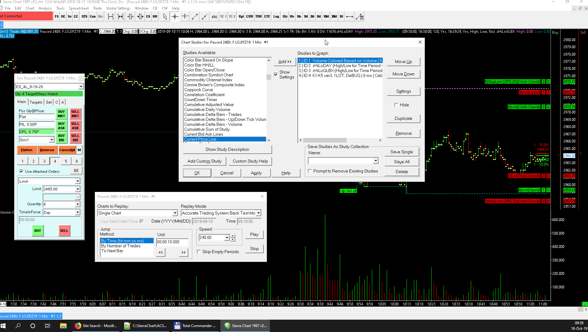 Problem with Chart Replay - it's processing certain ACSIL-set orders after PAUSE ONLY I've created a special "cut-off" version of this test trading system which should allow you to see the problem Tested it on both PC's - different compilers [yours remove & Visual Studio 2017], 32 & 64 versions, all the same Note: seems work relatively OK if NOT on chart replay mode NOTE1: it was working well about a year ago [last time I've tested something like that; and I'm trying re-test something else in Chart Replay mode right now - but I can't] NOTE2: I'm trying to add ACSIL (CPP) file with chart settings (cES.cht ) - but somehow I can't; "ADD / Edit Attached Files" button does nothing Date Time Of Last Edit: 2019-10-17 23:52:28