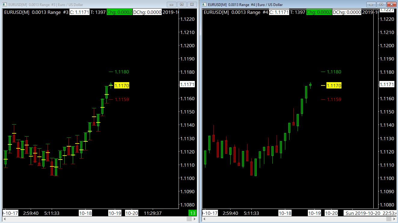 I'm after the image on the right, and can't seem to think through the formula that doesn't leave a trail of past instances. Here I've taken the range bar size from $J$39, and applied it to the current Hi/Lo, and split the difference, as the center is what I'm really after. Thanks in advance :-) |
