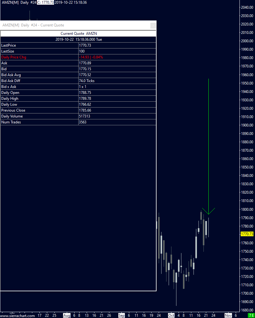 My data is from SC. Here is the AMZN chart that only shows the stem of the last daily candle. Only when I delete and reload the data, then the entire candle is painted. |