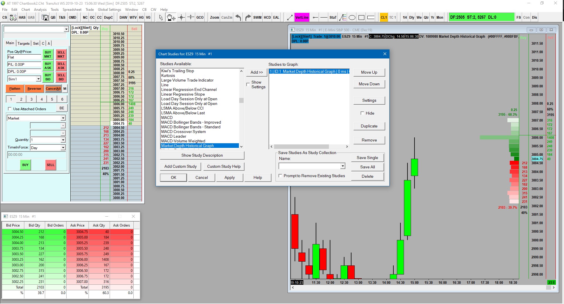Hi, I'm currently working on a trial version (1997) of Sierra. The Market Depth Historical Graph study as well as the Bid&Ask Depth Bars are not displaying. I've enabled record market depth in symbol settings, reconnected but to no avail. I haven't paid for a data feed though. Could this be the problem? Thank you |