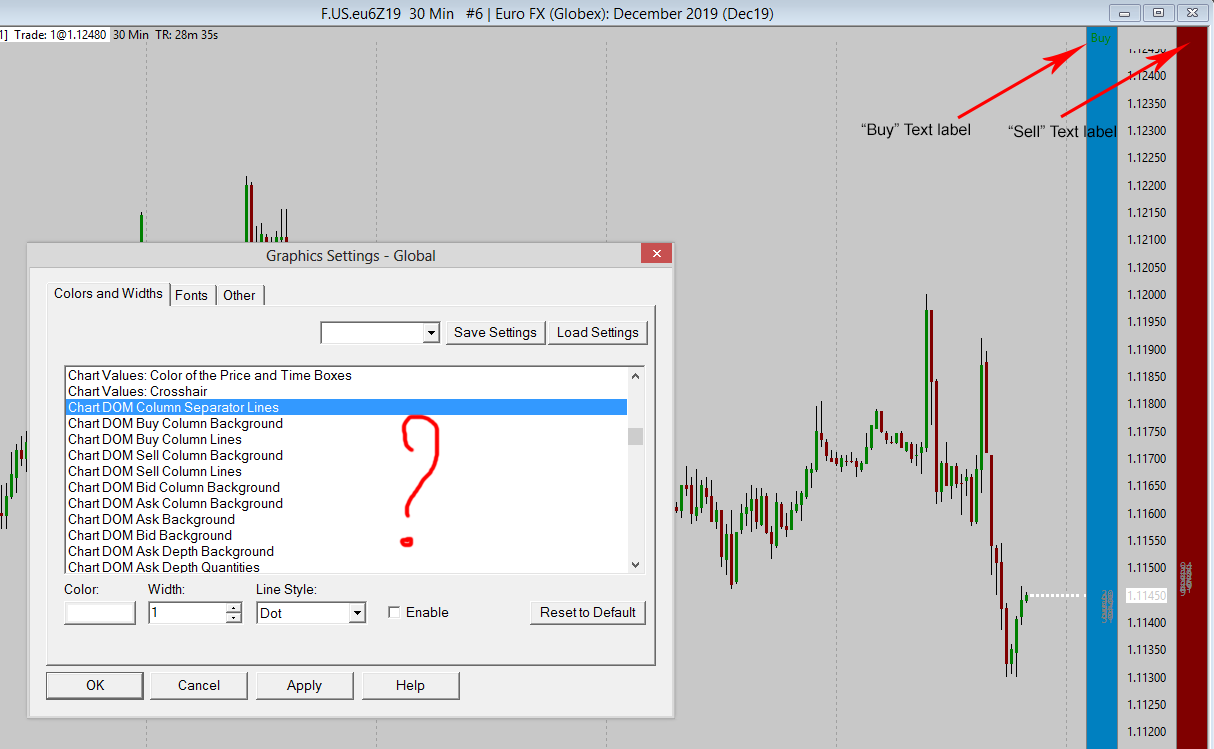 Can't find Color setting for Buy and Sell text labels in Chart DOM