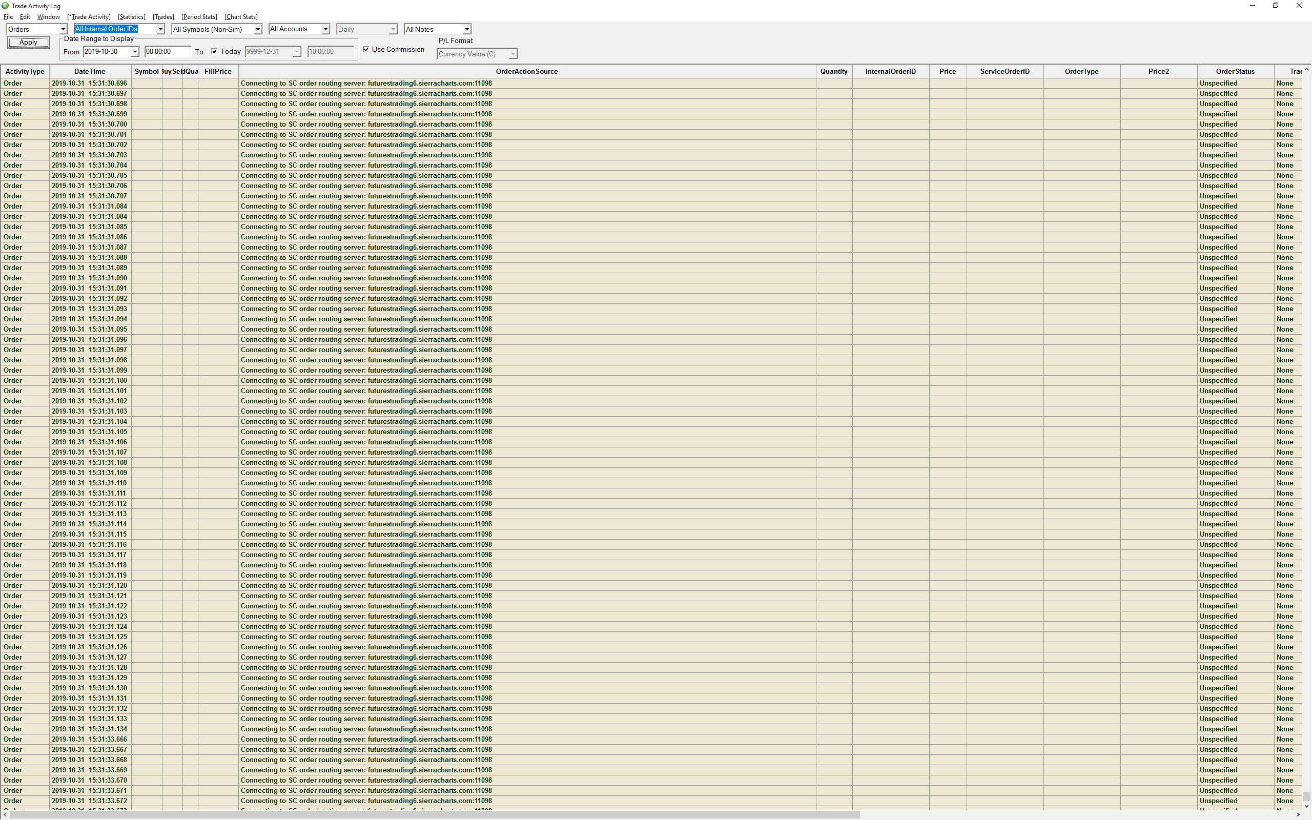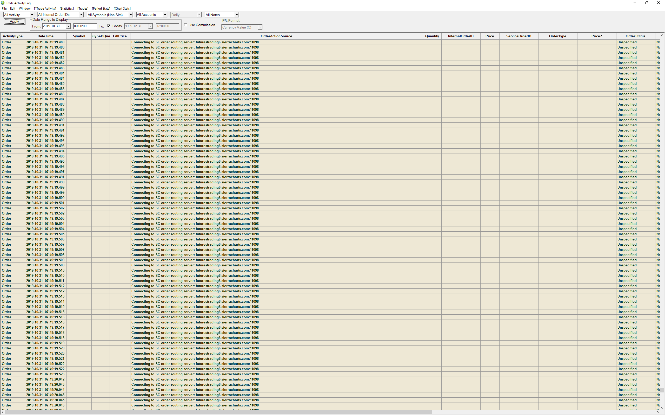 Trade Activity Log spamming "connecting to SC order routing" every millisecond