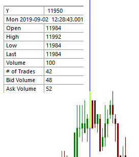 This extract shows, that tick data is incomplete as there is no tick provided for 11992 - it shows exactly the picture I received when debugging the data. So I can confirm your replay is really on tick-based data and correct. I will contact CQG on this issue.2019/9/2, 10:28:49, 11989, 11990, 11989, 11990, 11, 6, 4, 7 2019/9/2, 10:28:50, 11991, 11992, 11990, 11991, 17, 8, 5, 12 2019/9/2, 10:28:51, 11991, 11991, 11991, 11991, 2, 1, 2, 0 Please take my apologize - I never thought the issue could be with the tick-data provided. Thank you and regards, Markus |