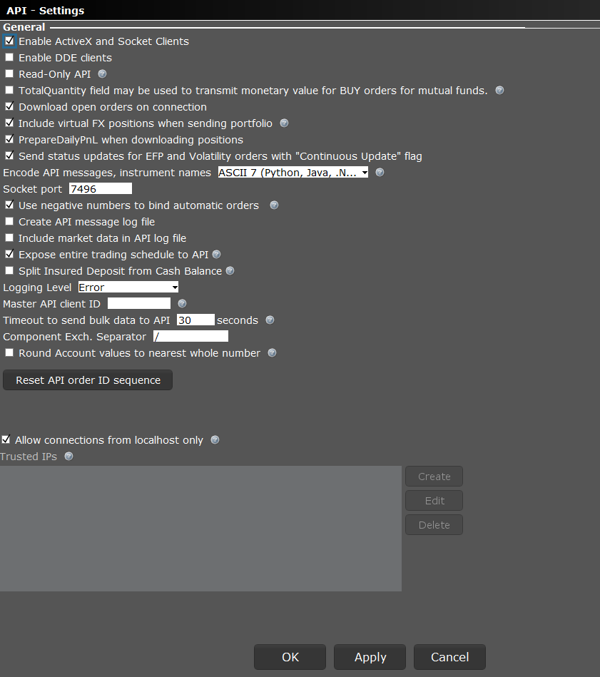 Hi, please inform me how to proceed, I have an account in Interactive Brokers but I want to use sierrachart realtime datafeed and use IB for execution (only concerning EUREX & CME futures). what setting I have to set on the Sierra and IB I do use SC data feed for EUREX & CME. RGDS. Maurice |