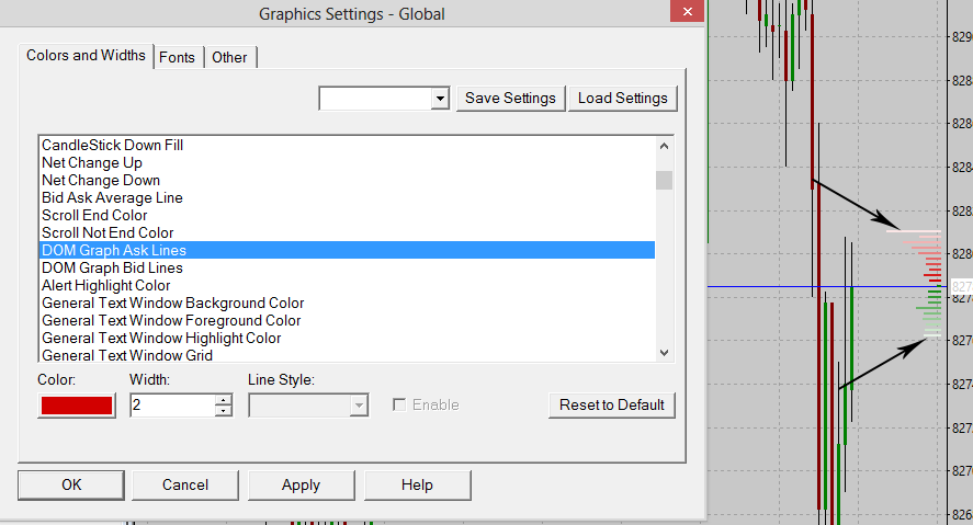 I have enabled DOM graph on chart. In Global_settings > Graphic_settings we can change colors of DOM_Graph_Ask_Lines and DOM_Graph_Bid_Lines. But this lines have gradient from colors to white. How to turn off this gradient or may be change this color? Please see screenshot attached. |