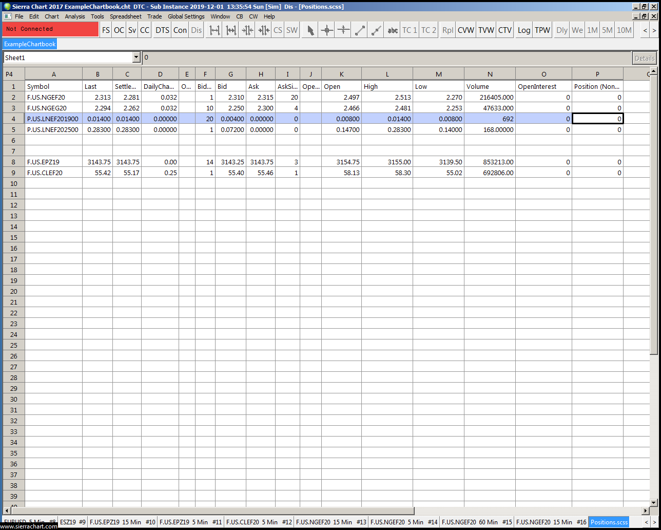 1)Server side MIT orders: I came to that conclusion perhaps erroneously but not irrationally through the combination of the extensive thought behind the software and your brief comment "we asked TT abt SS MIT" as opposed to "we asked TT abt SS MIT orders, but never the less we are developing them for our own Danali order routing service" this would have conveyed that you've already developed B.O. and OCO server orders. 2) As we've discussed CQG has issue, but PERHAPS unknown to you they also are very poor @ valuing non-top day options. In short advantage must adjust my PnL nightly to avoid a NEG Acct.balance and the resulting unable to trade message, probably the main reason for my interest in another trade execution system. This is critical, now as I understand the process the daily PnL and Daily net Liquidity is calculated by whomever I use to execute the orders. Now I know TT does NOT share these issues, however your Denali feed appears more stable and robust than TT's given their history. Advantage tells me they have several SC. users but were unaware of the Denali feed this could be a function of several factors, the person I spoke with in the risk department, they label both feeds(data and orders) S.C. or host of other reasons. But as far as net liquidity calculations have you experienced this(neg-net bal) with the denali feed? 3) I was unable to progammatically populate the SC SprSht. Curiously why did you choose not incorporate RTD for excel, was it to slow as I can guess @ the advantages of having Data go directly to software embedded sprdsht. Perhaps you would be so kind to give me an example of how to populate call options for NG using the CQG symbol (C.LNE). Also I see you have the command delete sheet but not copy sheet. Enabling Copy sheet combined with Find and replace would enable users to RE-USE the same sprdsht and hence only need to populate it once. 4)Lastly is extraneous decimals (see link)understandably your just pushing through the value from the data feed however two affects need to be address, the volume has a decimal and extraneous tenths and hundredths zeros, adjusting the format to ONE from default only temporally eliminates this as upon close a re-open they seem to re-appear. Second and more important are the decimals in the option prices although correct they are a distraction. I've uploaded a CQG Scrn Sht of a decimal free Sprd Sht, but of course it will be up to you to decide if this is a personal preference or something all your users would benefit from. http://www.sierrachart.com/image.php?Image=1575225356526.png |