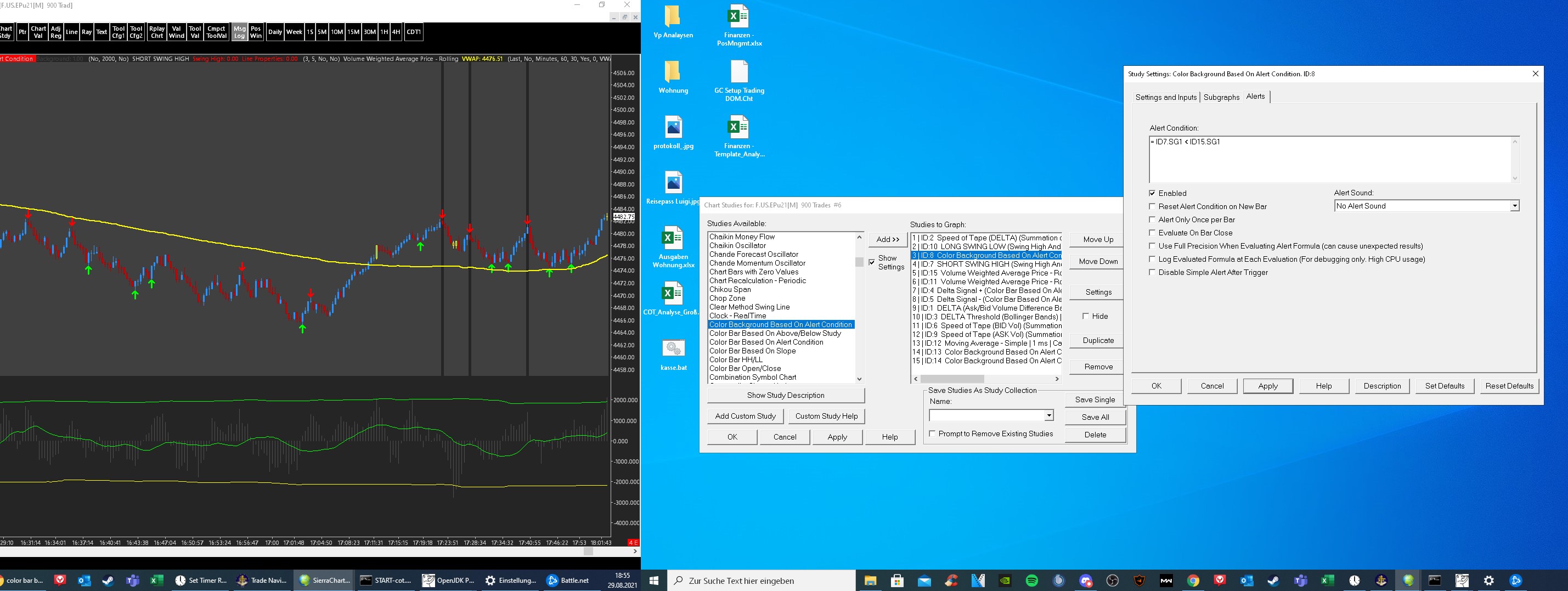 Hello John, thank you very much. This makes sense. It works now. Is there a way to take the swing highs and low from the ZigZag Indicator? There is no subgraph for the high and the low to define them in the color bar based on alert condition. The Problem is that, the swing low high study defines the lows and highs delayed. While the ZigZag indicator works in real time. Is there any other study that im not finding ? |