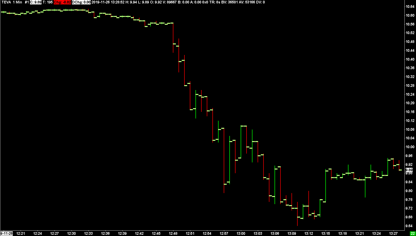 Sure. For example, i just typed in TEVA at 1:10pm est, and it's missing 5min bars starting from 12;55- 1:00, and part of bar of 1:05 pm.