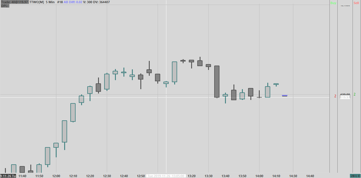 We are not seeing any missing data for that time.: http://www.sierrachart.com/image.php?Image=1574792937705.png We want you to remove all studies from the chart and increase the bar spacing significantly so we can see the timescale clearly at the bottom of the chart but still show the time where there is missing data. And then provide an image of the chart or Trade DOM, by following these instructions: https://www.sierrachart.com/index.php?page=doc/PostingInformation.php#Image Sierra Chart Support - Engineering Level Your definitive source for support. Other responses are from users. Try to keep your questions brief and to the point. Be aware of support policy: https://www.sierrachart.com/index.php?l=PostingInformation.php#GeneralInformation For the most reliable, advanced, and zero cost futures order routing, *change* to the Teton service: Sierra Chart Teton Futures Order Routing |