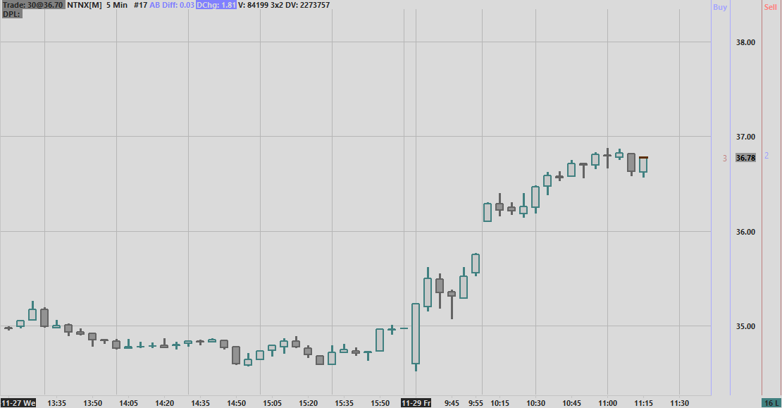 i just tried a random ticker FTNT, at 11:22 est. the missing data is always 15min prior to when i type in the ticker for the chart. Also, here's a chart I used earlier, i typed in the ticker around 10:10 est and 15min of data before that is missing. Thanks. http://www.sierrachart.com/image.php?Image=1575044284628.png Reading Internal Order ID file. | 2019-11-29 08:36:01.165 Reading Trade Orders file. | 2019-11-29 08:36:01.237 Reading Trade Positions file. | 2019-11-29 08:36:01.237 Reading Account Balance file. | 2019-11-29 08:36:01.239 UDPListener (1488). Port 22903 | Listening on UDP port 22903. | 2019-11-29 08:36:01.260 Software version: 2017 32-bit | 2019-11-29 08:36:01.260 Usage end date: 2020-02-14 | 2019-11-29 08:36:01.260 Enabled for: Advanced Features 2. | 2019-11-29 08:36:01.260 Enabled for: Sierra Chart Historical Data Service. | 2019-11-29 08:36:01.260 Enabled for: Sierra Chart Real-Time Exchange Data Feed. | 2019-11-29 08:36:01.260 Enabled for: Delayed Denali Real-Time Exchange Data Feed. | 2019-11-29 08:36:01.260 Enabled for exchange: INDEXES_DATA_BARCHART | 2019-11-29 08:36:01.260 Enabled for exchange: U.S. Equities (NYSE, NASDAQ, AMEX, BATS) | 2019-11-29 08:36:01.260 Enabled for exchange: BATS (NYSE, NASDAQ) | 2019-11-29 08:36:01.260 Received 2 data feed usernames. | 2019-11-29 08:36:01.260 Allow Support for Sierra Chart Data Feeds is enabled. | 2019-11-29 08:36:01.260 Current selected Data/Trading service: Interactive Brokers | 2019-11-29 08:36:01.260 Custom symbol settings values: disabled | 2019-11-29 08:36:01.260 Chart Update Interval: 300 | 2019-11-29 08:36:01.260 Intraday Data Storage Time Unit: 0 | 2019-11-29 08:36:01.260 Time Zone: -05:00:00 (EST-05EDT+01,M3.2.0/02:00,M11.1.0/02:00) | 2019-11-29 08:36:01.260 2019-11-29 08:36:01 Local computer time | 2019-11-29 08:36:01.260 2019-11-29 13:36:01 Local computer time in UTC | 2019-11-29 08:36:01.260 2019-11-29 08:36:01 Local computer time in SC Time Zone | 2019-11-29 08:36:01.260 2019-11-29 13:36:13 Server time in UTC | 2019-11-29 08:36:01.260 Local computer UTC time and Server UTC time difference: 13 seconds. | 2019-11-29 08:36:01.260 Program path: C:\SierraChart_IB\ | 2019-11-29 08:36:01.260 Data Files path: C:\SierraChart_IB\Data\ | 2019-11-29 08:36:01.260 OS Version Number: 10.0 | 2019-11-29 08:36:01.260 Locale Setting: C | 2019-11-29 08:36:01.260 FTNT[M] 1 Min #5 | Performing a full recalculation because it has been tagged. Chartbook: R1__.Cht | 2019-11-29 11:21:23.415 HD Request # 186 | Downloading Intraday chart data for FTNT to the file FTNT.scid. Service: equities.us | 2019-11-29 11:21:25.381 HD Request # 186 | Download start date-time: 2019-11-22 11:21:25.000 | 2019-11-29 11:21:25.382 HD Request # 186 | Using server: exchangehistdata1.sierracharts.com port 10150 | 2019-11-29 11:21:25.382 Socket (3) | Creating socket. | 2019-11-29 11:21:25.382 Socket (3) | Connecting to IP: 8.18.161.135. | 2019-11-29 11:21:25.382 HD Request # 186 | Setting DTC encoding to Binary VLS | 2019-11-29 11:21:25.463 HD Request # 186 | Sending historical data logon request message. | 2019-11-29 11:21:25.463 HD Request # 186 | Requesting Intraday data. Start date-time: 2019-11-22 11:21:25. Record interval: 0. Symbol: FTNT | 2019-11-29 11:21:25.494 HD Request # 186 | Decompressing data. | 2019-11-29 11:21:25.700 HD Request # 186 | Receiving Intraday data for FTNT starting at 2019-11-22 11:21:28 | 2019-11-29 11:21:25.865 HD Request # 186 | Timestamp of first Intraday data file record written: 2019-11-22 11:21:28 | 2019-11-29 11:21:25.865 Socket (3) | CloseSocket call. | 2019-11-29 11:21:25.933 Socket (3) | Shutdown started. Waiting for graceful close. | 2019-11-29 11:21:25.933 Historical data download thread signaled to stop. | 2019-11-29 11:21:25.934 HD Request # 186 | Received 12298 records from 2019-11-22 11:21:28.000 to 2019-11-29 11:05:43.000 (7.0 days) and wrote 12298 records for FTNT | 2019-11-29 11:21:25.935 HD Request # 186 | Completion time: 0s | 2019-11-29 11:21:25.935 HD Request # 186 | Intraday data download complete for FTNT. Unique request ID: 186 | 2019-11-29 11:21:25.935 Removing historical data download ID 186. | 2019-11-29 11:21:25.935 Real-time Intraday chart data file updates started for FTNT | 2019-11-29 11:21:25.935 Intraday chart data file opened for FTNT | 2019-11-29 11:21:25.935 Triggering next historical data download in queue. | 2019-11-29 11:21:25.935 Socket (3) | Socket gracefully closed by remote side. | 2019-11-29 11:21:25.974 Socket (3) | Closed. | 2019-11-29 11:21:25.975 Chart #19 has tagged chart #5 for full recalculation. Chartbook: R1__.Cht | 2019-11-29 11:21:26.240 Chart #8 has tagged chart #13 for full recalculation. Chartbook: R1__.Cht | 2019-11-29 11:21:26.293 Chart #12 has tagged chart #1 for full recalculation. Chartbook: R1__.Cht | 2019-11-29 11:21:26.316 Chart #12 has tagged chart #13 for full recalculation. Chartbook: R1__.Cht | 2019-11-29 11:21:26.316 Chart #12 has tagged chart #5 for full recalculation. Chartbook: R1__.Cht | 2019-11-29 11:21:26.316 Chart #3 has tagged chart #13 for full recalculation. Chartbook: R1__.Cht | 2019-11-29 11:21:26.322 Chart #3 has tagged chart #5 for full recalculation. Chartbook: R1__.Cht | 2019-11-29 11:21:26.322 Chart #4 has tagged chart #13 for full recalculation. Chartbook: R1__.Cht | 2019-11-29 11:21:26.360 Chart #4 has tagged chart #5 for full recalculation. Chartbook: R1__.Cht | 2019-11-29 11:21:26.360 Chart #17 has tagged chart #13 for full recalculation. Chartbook: R1__.Cht | 2019-11-29 11:21:26.363 Chart #7 has tagged chart #10 for full recalculation. Chartbook: R1__.Cht | 2019-11-29 11:21:26.366 Chart #7 has tagged chart #13 for full recalculation. Chartbook: R1__.Cht | 2019-11-29 11:21:26.366 Chart #7 has tagged chart #9 for full recalculation. Chartbook: R1__.Cht | 2019-11-29 11:21:26.366 Chart #2 has tagged chart #13 for full recalculation. Chartbook: R1__.Cht | 2019-11-29 11:21:26.382 Chart #2 has tagged chart #5 for full recalculation. Chartbook: 