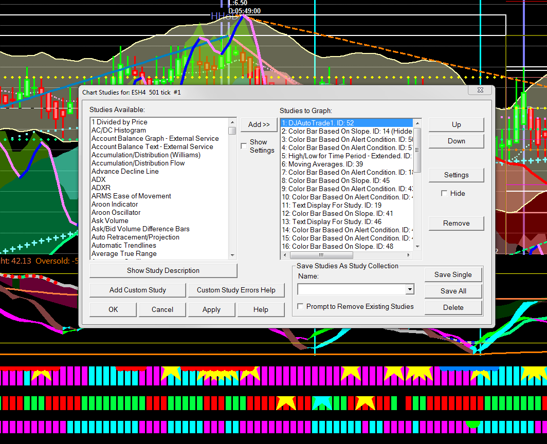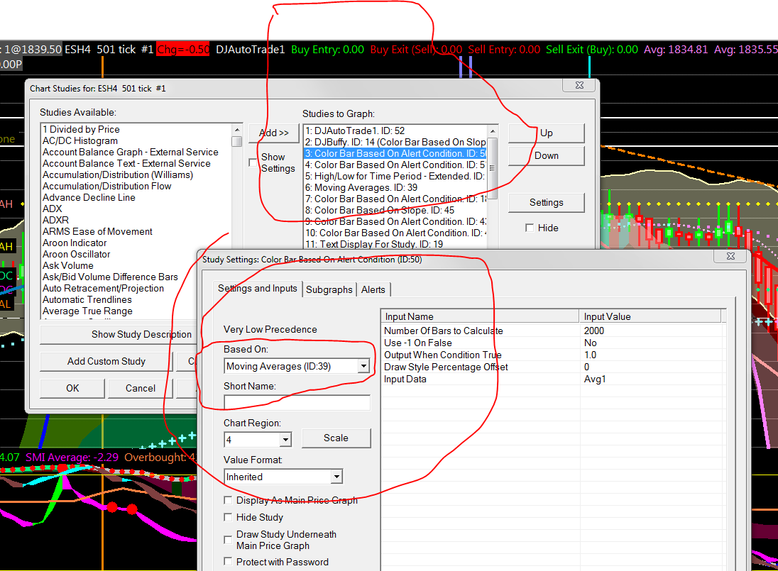 Screen shots enclosed. First is the "SC speadsht studies before" file. It shows the studies before I add the short name. Next is the "SC Spreadsheet name added in first not second line" file. It shows that the short name got added to the first line, not the second line of the spreadsheet. Next the third file "SC Chart Studies Settings now corrupted not color bar highlighed but Moving averages in child window" shows the corrupted names in the Chart Studies window. Notice that "Color Bar Based on alert" is selected but the Moving Averages study appears in the child window. |