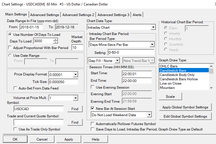 We are not sure how you come to this conclusion but the low for the trading day 2019-12-16 is 1.31151 You can see this by looking at a Historical daily chart for USDCAD. There clearly is no problem. More information can be found here: Sierra Chart Real Time and Historical Forex and CFD Data Service: Historical Daily Data Session Times Sierra Chart Support - Engineering Level Your definitive source for support. Other responses are from users. Try to keep your questions brief and to the point. Be aware of support policy: https://www.sierrachart.com/index.php?l=PostingInformation.php#GeneralInformation For the most reliable, advanced, and zero cost futures order routing, *change* to the Teton service: Sierra Chart Teton Futures Order Routing Date Time Of Last Edit: 2019-12-17 04:13:42