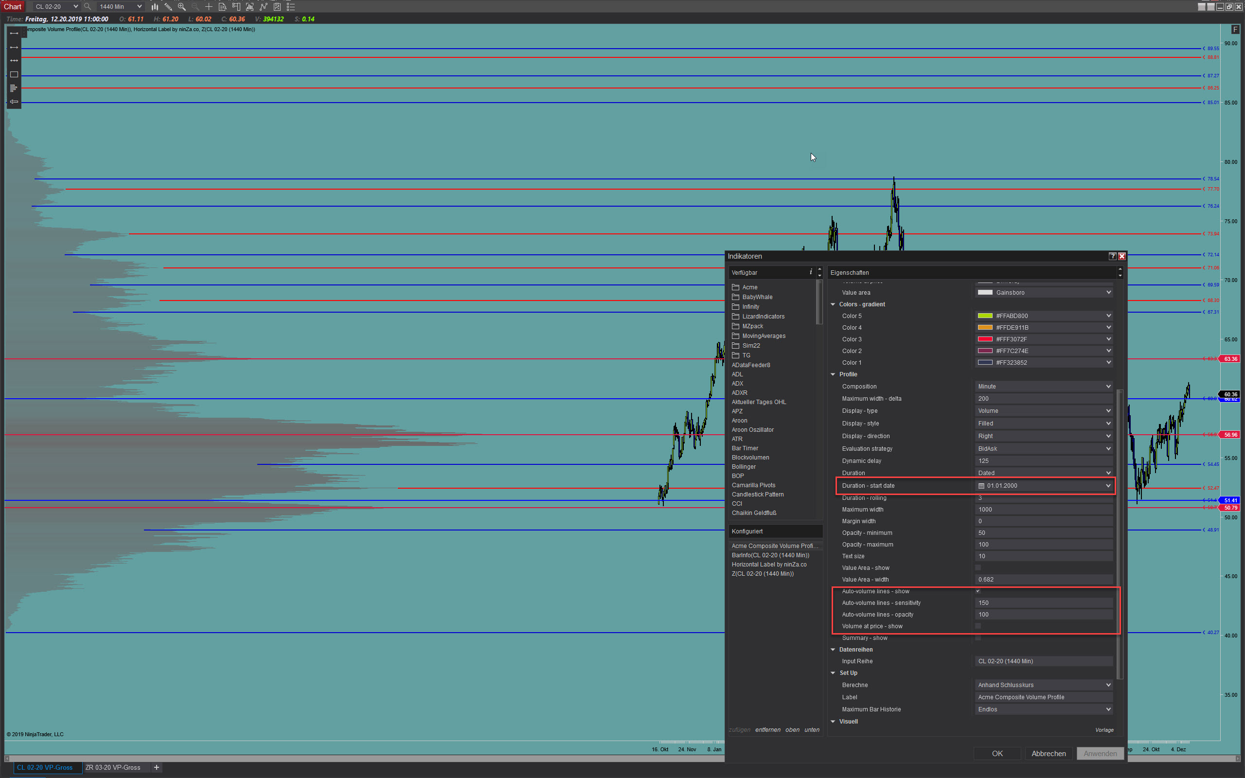 I try to set the same composite volume profile as I used in NinjaTrader, but without success. 1. I find no solution to fix the profile on the left or right side (no move if I shift the chart on the right or left side). 2. I can’t adjust the ticks per volume bar on 1 tick (it chance automatically on 5 ticks) 3. I don’t want to load 15 Years back the chart. 4. Is there any possibility of auto LVN and POC drawn with a sensitive adjustment? Could you tell me how I can set the Composite correct, to get the same composite? |