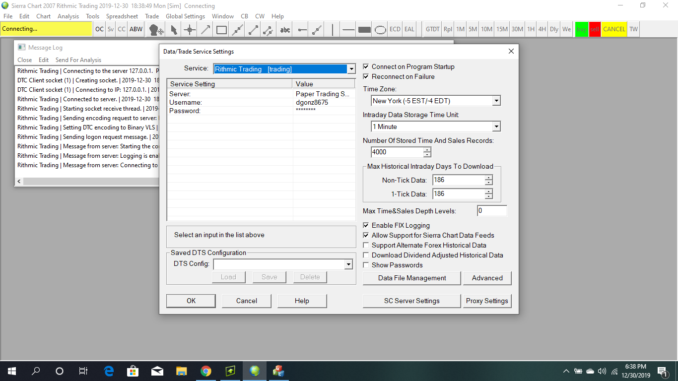 You need to have a direct paid account for this: Direct Sierra Chart Account When you are using Sierra Chart that has been provided through an affiliate, you do not have a direct paid account with us, and you wish to access functionality that is not provided in your limited version, you must have an account with Sierra Chart directly and have a standard installation of Sierra Chart. To accomplish this, follow the instructions below: Direct Sierra Chart Account Sierra Chart Support - Engineering Level Your definitive source for support. Other responses are from users. Try to keep your questions brief and to the point. Be aware of support policy: https://www.sierrachart.com/index.php?l=PostingInformation.php#GeneralInformation For the most reliable, advanced, and zero cost futures order routing, *change* to the Teton service: Sierra Chart Teton Futures Order Routing Date Time Of Last Edit: 2020-01-02 12:50:47