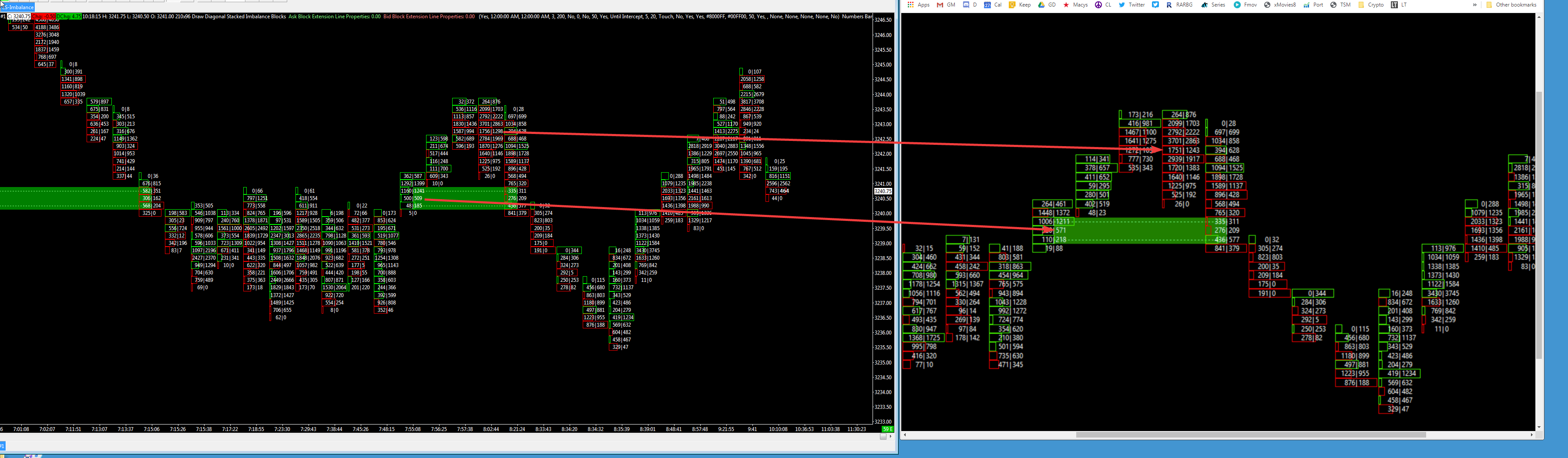 Hello. I have two computers, one a VPS and one a local PC. Both are running the latest version of SC. Both using the Rithmic datafeed from AMP using the Rithmic 01 server. Both are running the exact same chart book. The only difference is the VPS is in Chicago and the computer in CA, which is a 2hour time difference. I cannot get the aligned 5t renko bar to match 100%. Some of it matches and some of it doesn't. Any thoughts? The red arrows are showing areas where it doesn't match, but there are many bars where it matches exactly. |