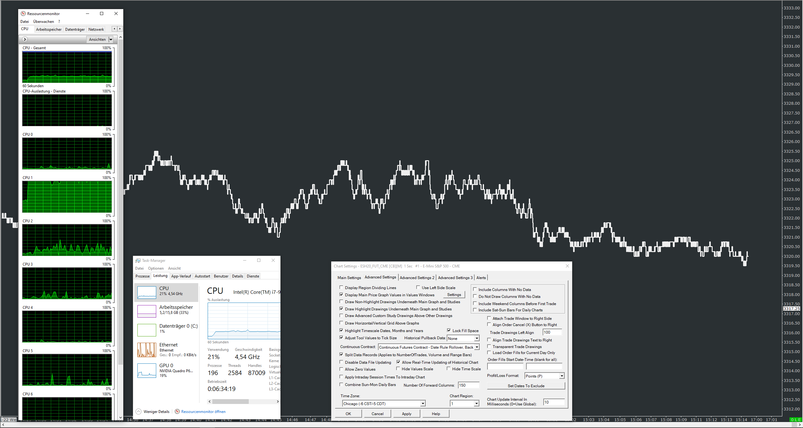I already tried literally everything to fix this with zero luck. The issue is isolated to the chart update, even with no feed connected or connected and low activity (globex 1. hour) the cpu core gets heavy load. OpenGL is also no solution for me. And I need the Market Depth Chart because otherwise I need to run Bookmap additionally. So I'm gonna invest the time over the upcoming weekend to install Windows 7. Hopefully the issue then gets solved. Thanks elj00 for helping out! |