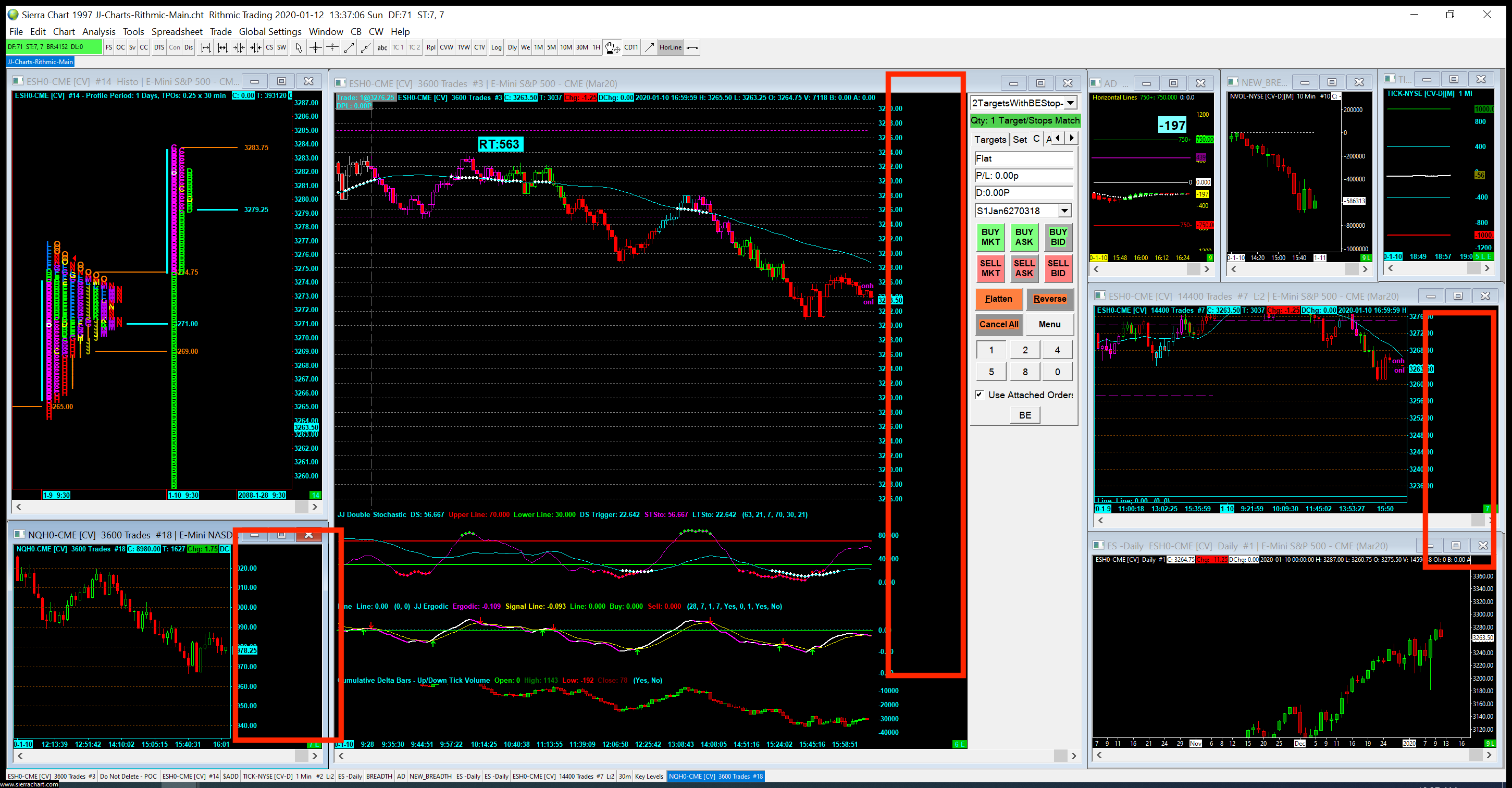 Hi, Can you please tell me how I can get rid of the black space between the scale and the right side edge of the charts. (The RED RECTANGLE I have drawn on the charts.) I am seeing this problem mostly in TICK charts such as 3600Tick etc. But some times I don't see this. I used these charts for ever and never had this problem but seeing this problem just recently. This is NOT the Lock Fill space, I have tried all possibilities with the Lock Fill space and not to any use. Please see the attached pic. Thanks. |
