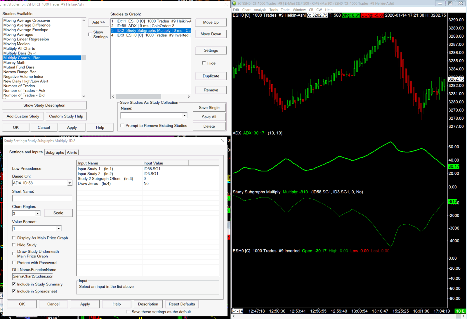 I was able to invert the ADX study, but not correctly. I read the documentation for the Study Subgraph Multiply a couple of time, but still not sure quite how to use it correctly. I've included a screenshot and the chart file in a chart book so hopefully you might be able shed some light on the issue for me. I also want to mention that I am using an old chart build (1941), because with TransAct and builds after 1941 my charts have a serious lag when volatility hits the market. Thank you for you time and effort on my behalf. I really appreciate the help. Best Regards, Brett Walker |