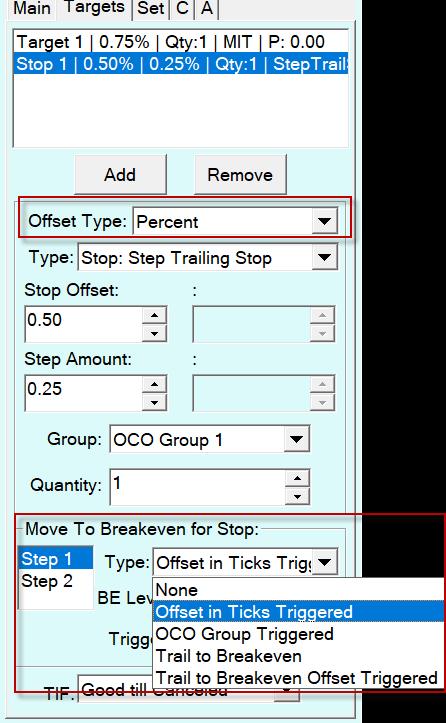 Percent offset available for stop and target. I would like to request this make available to breakeven for stop as well. Thanks |