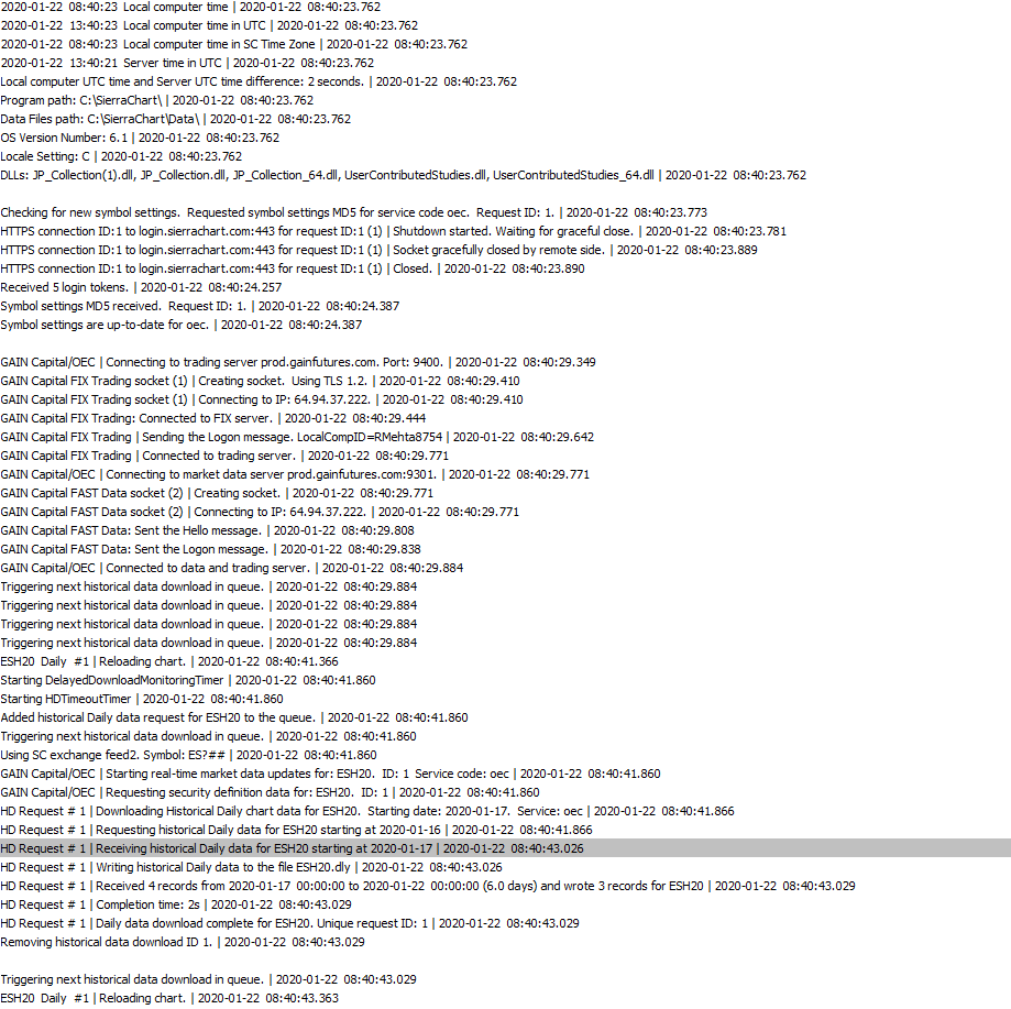Hello, I am using OpenEcry/GAIN capital as data feed and when I just create a new chart the price does not get updated. It is very important to get this working. Can you please let me know, why it stopped working yesterday ( 1/21/2020). Please let me know, if you need me to send any files or logs. I updated to the latest version of Sierra chart. Thankyou. Bijal |