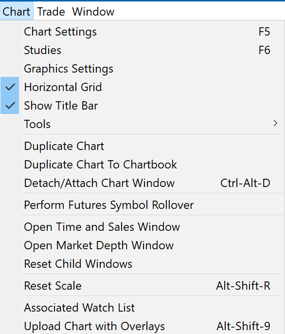 Thank you. Is there an option somewhere to save all my graphics settings, studies, trade options like confirmations, etc. that I have applied to a Trade DOM window? I'd like that ability so that whatever I set up as my "default" Trade DOM options they can be applied to all Trade DOMs I open. That is, if I open another chartbook with a different symbol and then I add a Trade DOM to that chartbook, my "defaults" are applied. UPDATE: Can I accomplish this changing all the default settings for graphics in Global Settings and still be able to revert on global back and forth between the SC installed defaults and my global defaults? If so, that is fine. I presume "Disable order confirmations global" on global trade settings is the answer to second part? Date Time Of Last Edit: 2020-02-01 18:34:11