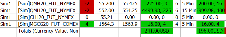 v2028: This is sim to show the issues: 1. Trade/Quote Symbol doesn't show QM positions on CL chart properly. 2. QM price/multiplier has some pricing issue. See pic attached. 3. Trade Activity Log Chart Stats shows PnL from source chart, not trade symbol. 4. Both of these issues, seem to incorrectly activate global daily loss limit. Will this also affect live trading? |