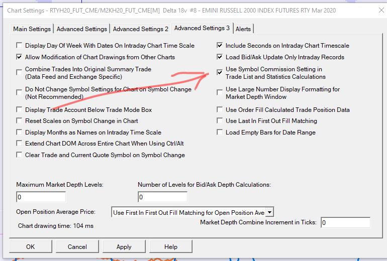 Refer to the information here and ensure that you have all the options set correctly: Trade Activity Log: Use Commission Sierra Chart Support - Engineering Level Your definitive source for support. Other responses are from users. Try to keep your questions brief and to the point. Be aware of support policy: https://www.sierrachart.com/index.php?l=PostingInformation.php#GeneralInformation For the most reliable, advanced, and zero cost futures order routing, use the Teton service: Sierra Chart Teton Futures Order Routing |