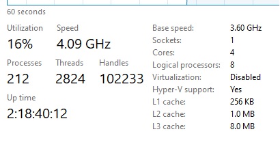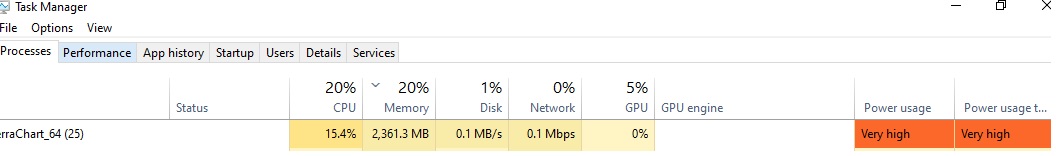 Refer to Help Topic 30: High CPU Usage | Inactive User Interface | Poor Performance | Long Time to Load Chart Data | Charts Reloading Often Sierra Chart Support - Engineering Level Your definitive source for support. Other responses are from users. Try to keep your questions brief and to the point. Be aware of support policy: https://www.sierrachart.com/index.php?l=PostingInformation.php#GeneralInformation For the most reliable, advanced, and zero cost futures order routing, use the Teton service: Sierra Chart Teton Futures Order Routing |