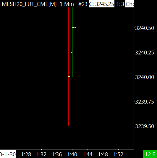 would you care to tell me how I have been filled in SC on a stop at 3239 when the LOW ON GLOBEX JUST NOW WAS 3239.50????? At first I thought oh god typical Globex screwing the stops, but no it was SC screwing their customer...Unless I am reading my 1 min chart wrong from you then you filled me at price that HAS NOT TRADED TODAY. How have you managed that? Is your 1 min chart wrong? No I just checked on CMEDirect the low is 39.50 so you basically have filled me at an illegal price. Umm who took the other side of that trade??? I have emailed Ray and will expect an answer asap on this. This is NOT acceptable. A bad trade is my responsibility.You filling me at a price that never traded on the exchange is UNACCEPTABLE....http://www.sierrachart.com/image.php?Image=1580370903643.png |