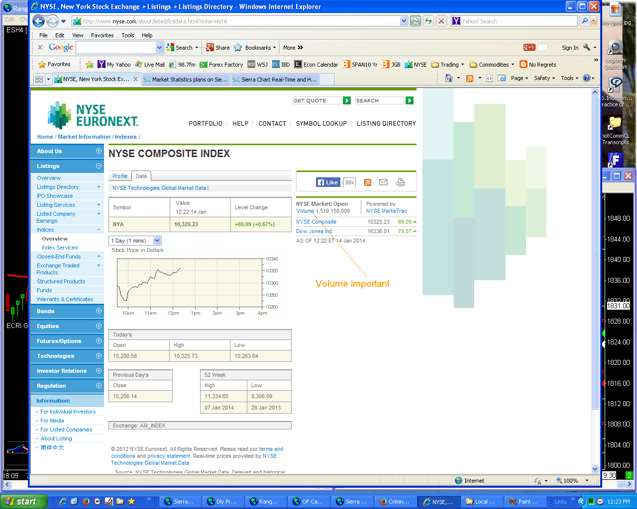 can you provide IQFeed symbol VI7T.Z (NYSE COMPOSITE INDEX VOLUME)? or better still... the NYSE COMPOSITE INDEX VOLUME from the NYSE website http://www.nyse.com/about/listed/lcddata.html?ticker=NYA VI7T.Z is approximately 5 to 10% less volume than the NYSE website source. The following PDF from the NYSE website describes the index - what I'm after is the VOLUME on this NYSE COMPOSITE INDEX. http://www.nyse.com/pdfs/NYSEEuronext_CompIndex.pdf |
