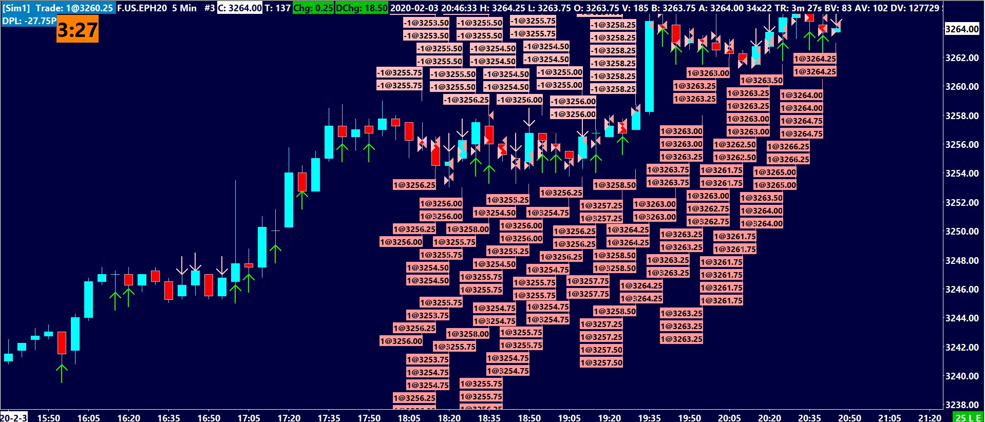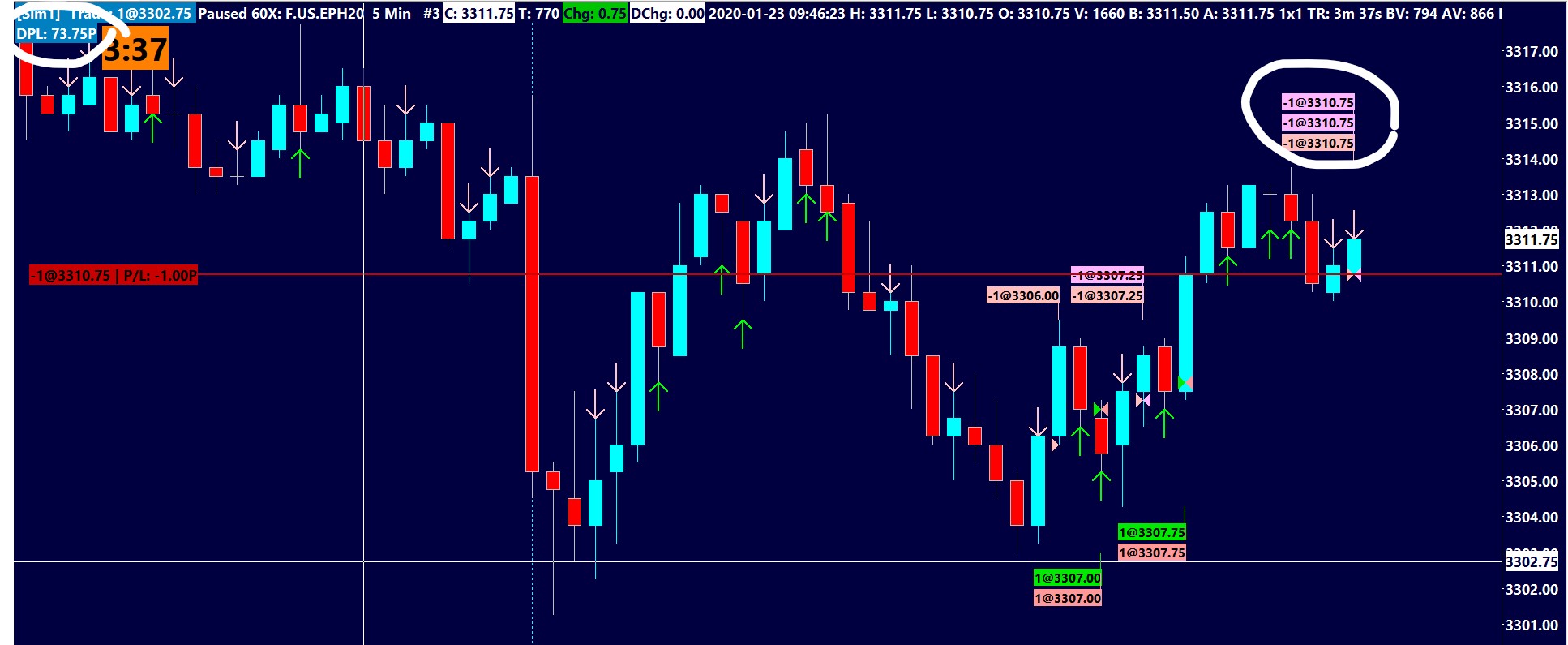 The problem seems to be getting more frequent with time. Not sure what the culprit is but I did update Sierrachart this morning to the latest build. Is anyone else seeing the same problem with the order size? Or with the two opposite orders within the same bar or candle as you can see on the chart? |