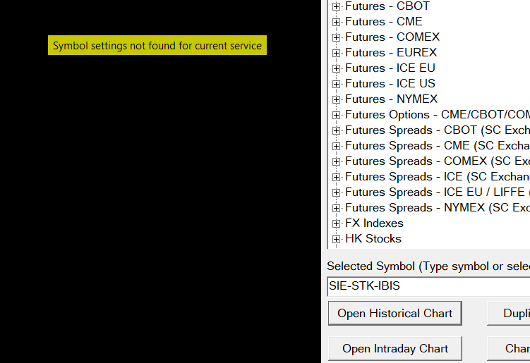 That is ok. Refer to the documentation here in regards to this: Global Symbol Settings: Symbol Settings Not Found Message Sierra Chart Support - Engineering Level Your definitive source for support. Other responses are from users. Try to keep your questions brief and to the point. Be aware of support policy: https://www.sierrachart.com/index.php?l=PostingInformation.php#GeneralInformation For the most reliable, advanced, and zero cost futures order routing, *change* to the Teton service: Sierra Chart Teton Futures Order Routing |