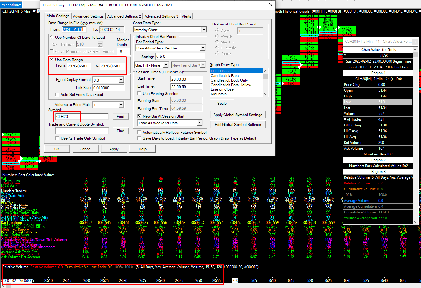 For an understanding of this, refer to: Chart Session Times: Understanding Trading Day Dates Based on Session Times Sierra Chart Support - Engineering Level Your definitive source for support. Other responses are from users. Try to keep your questions brief and to the point. Be aware of support policy: https://www.sierrachart.com/index.php?l=PostingInformation.php#GeneralInformation For the most reliable, advanced, and zero cost futures order routing, *change* to the Teton service: Sierra Chart Teton Futures Order Routing |