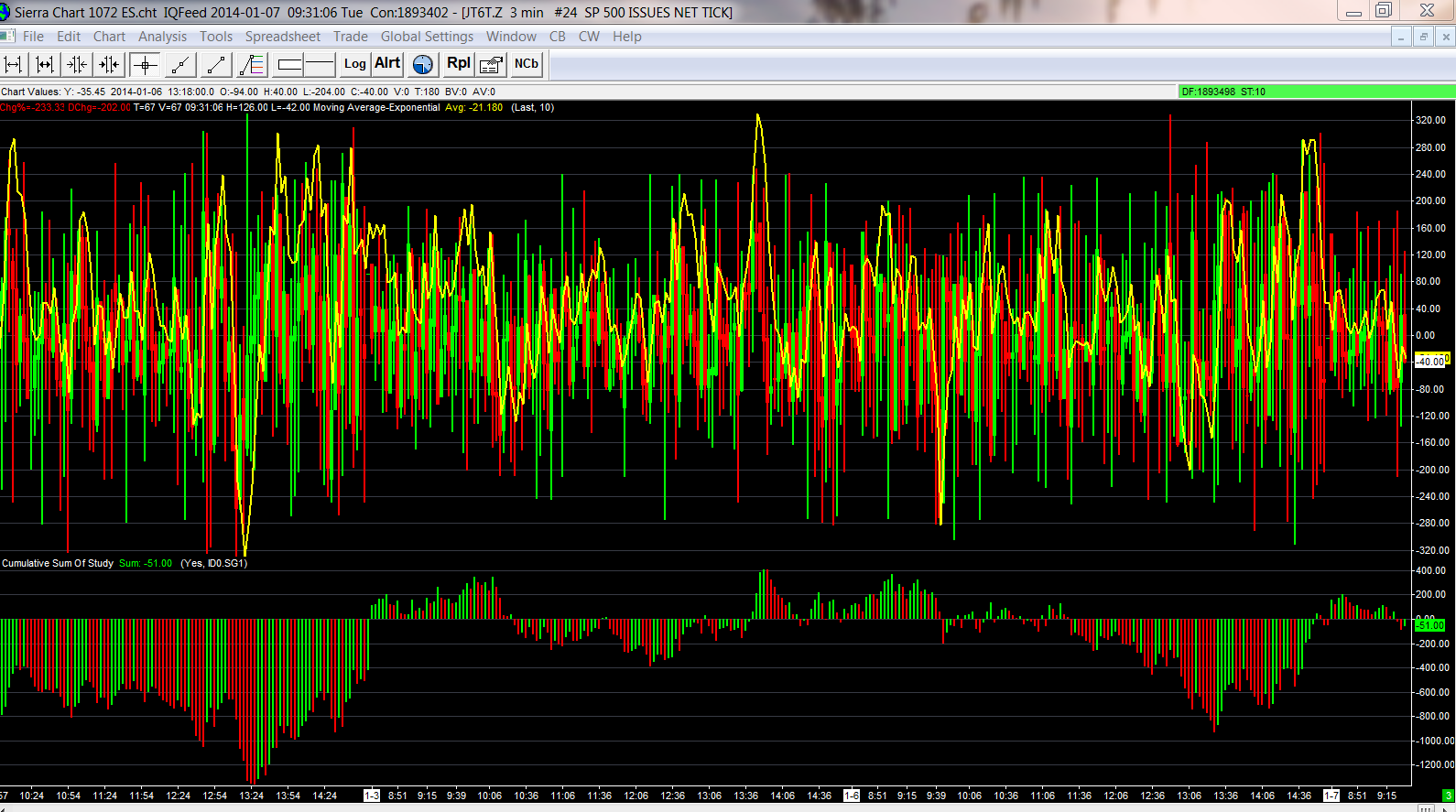 What do you want us to do about this being this is not within the scope of our support? If you think this should be the within the scope of our support, then you are most welcome to take your business elsewhere and see if you can get the help that you need. And what does IQ Feed have to do it this. You are basically doing additional calculations on their own data and this result does not compare to another program. How could we help with something like this? We would have to get your Chartbook and examine you what you are doing closely and a look at how this other program is configured to do the same calculation. It should be common sense, that we will not help with this. It is precisely these kinds of questions, unnecessarily take our time and we do not know why you would expect an answer from us on this. Maybe all of this comes across as surprising to you. There are limitations to what we will provide support for. Sierra Chart Support - Engineering Level Your definitive source for support. Other responses are from users. Try to keep your questions brief and to the point. Be aware of support policy: https://www.sierrachart.com/index.php?l=PostingInformation.php#GeneralInformation For the most reliable, advanced, and zero cost futures order routing, *change* to the Teton service: Sierra Chart Teton Futures Order Routing Date Time Of Last Edit: 2014-01-07 22:28:39