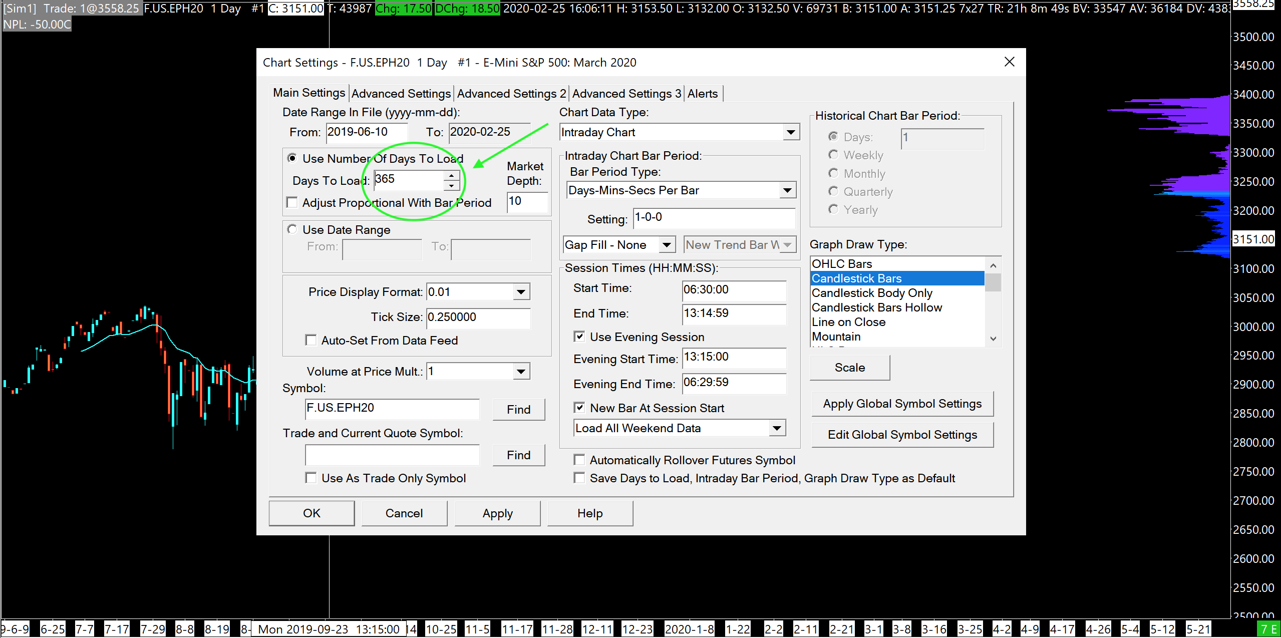 Hello, the amount of days I have set in my chart settings is 365 (seen in the image below). However, my bars on my chart only print back to the date 7/17/2019 before becoming inaccurate (seen in image below). Also, my volumebyprice for this chart is set for 365 days and prints nothing below the price of ~3100 even though there is volume below (seen in image below). Please let me know of solutions, thank you.