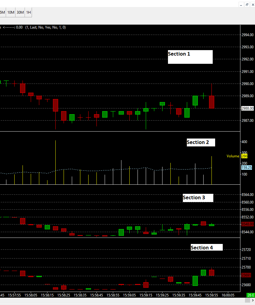 I have a chart with several studies but I need to change the order of the studies. In the attached image main chart is in Section 1. I would like to move up the study in Section 3 and move up the study in section 4. I want the study in section 2 to be on the bottom (where section 4 is now). Also, how do I make sections 1, 3, and 4 all the same size? Currently section 1 is biggest and section 3 may be slightly smaller than section 4.