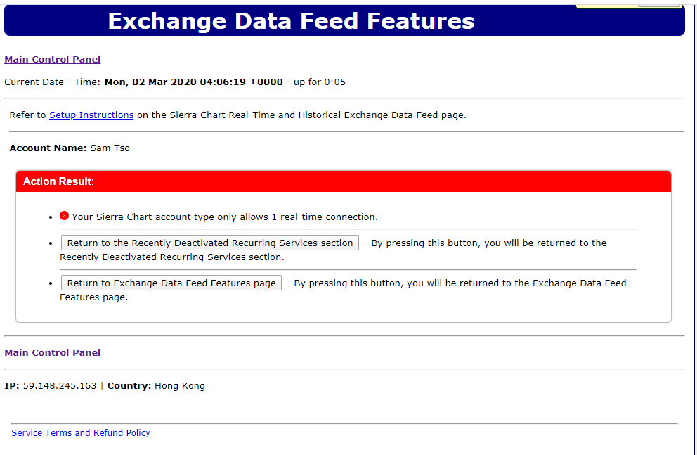 Please let me know where or how can I pay HKF exchange fee for 2nd and 3rd connections as the page in Account Control Panel >> Exchange Data Feed Features does not show the place for me to make payment. It only allows me to renew the exchange fee for the first connection.