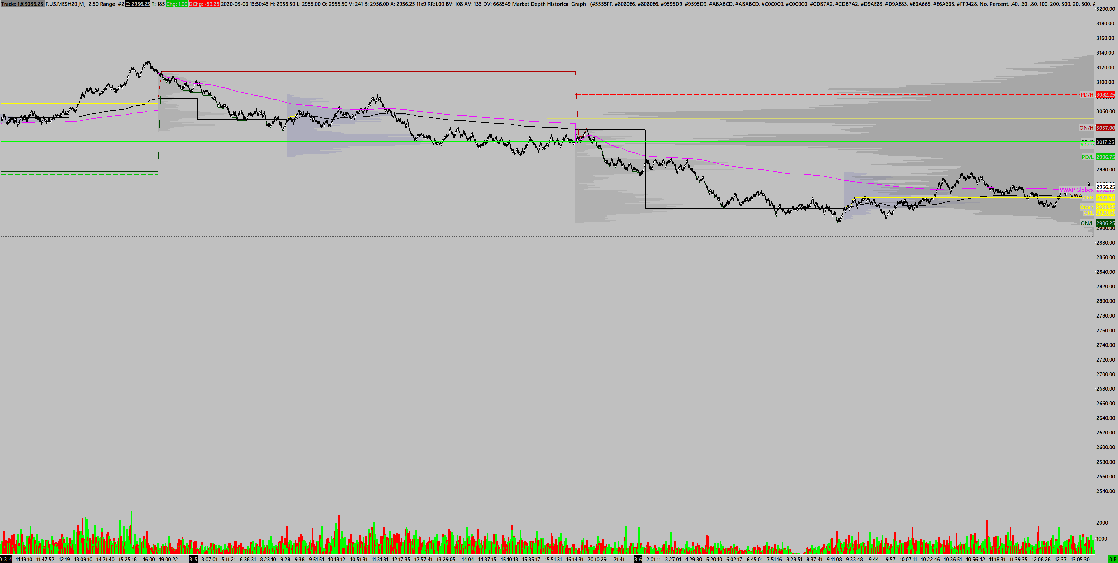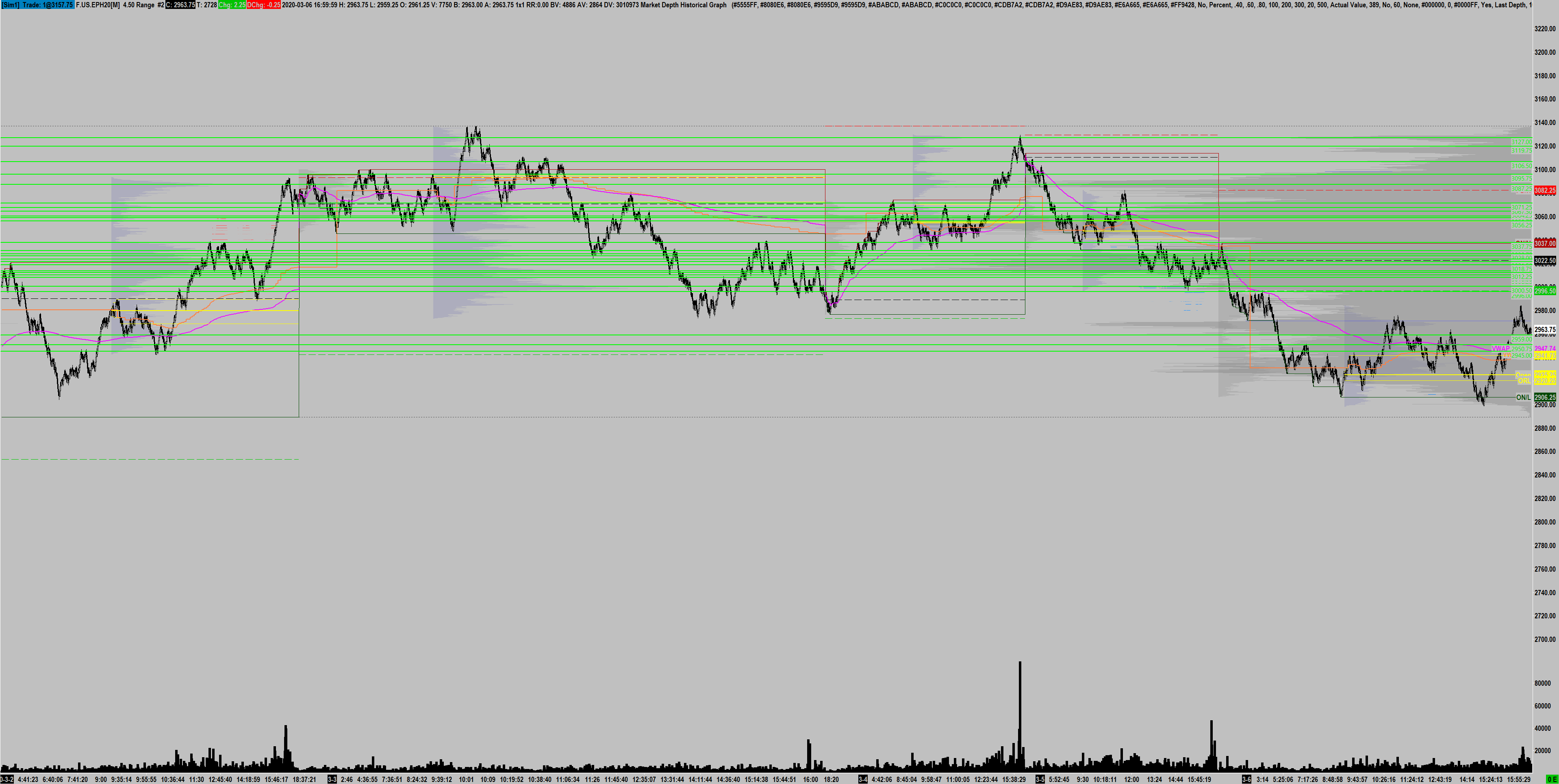 There definitely is a problem there! If you use bars like in the 2.5 range the most your software will allow you to compress it is like the first poster and I stated about 2 days. If I increase that range to the 4.5 range then we can get 5 days. Obviously with all the market activity over the past week the software is not capable of displaying that much data. Please view the first image again and note the range setting, then compare to the second. Unless there is some setting that we are missing when the market is extremely active. http://www.sierrachart.com/image.php?Image=1583519446605.png View at 4.5 range: http://www.sierrachart.com/image.php?Image=1583543415435.png |