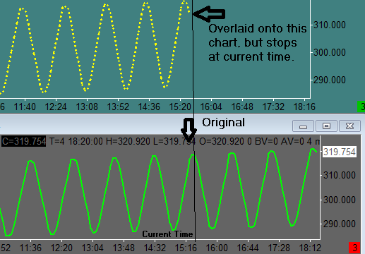 I created a data file in another program that contains a neural net type of forecast which goes into the future. I would like to plot this data on a chart so that I can see the forecast line to the end of the file (or at least to the end of the right hand margin of the chart). I am able to create a historical chart with the data file no problem. I am then able to use the Overlay indicator to add it to a regular chart. When I do this, the forecast data stops at the current bar time, with no plot into the future. I can also overlay the price chart onto the historical chart I created of the forecast. When I do this, the future plot of the forecast is there but the bar chart does not update unless I manually refresh it. I suppose this is because the main data of the chart, the forecast line, is not updating. I'll attach a picture that hopefully makes it clear. Is there a solution that I am missing? Thanks Date Time Of Last Edit: 2014-01-08 20:58:00