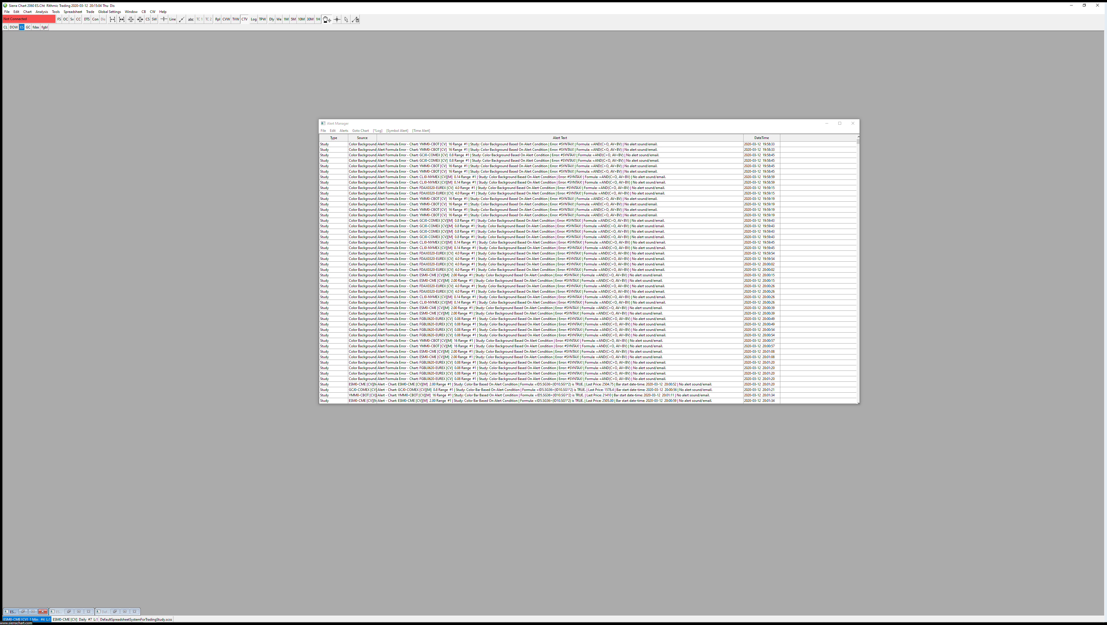 Check this setting: General Settings Window: Show Alerts Log On Study Alert (Global Settings >> General Settings >> Alerts >> Additional Settings) Sierra Chart Support - Engineering Level Your definitive source for support. Other responses are from users. Try to keep your questions brief and to the point. Be aware of support policy: https://www.sierrachart.com/index.php?l=PostingInformation.php#GeneralInformation For the most reliable, advanced, and zero cost futures order routing, *change* to the Teton service: Sierra Chart Teton Futures Order Routing |