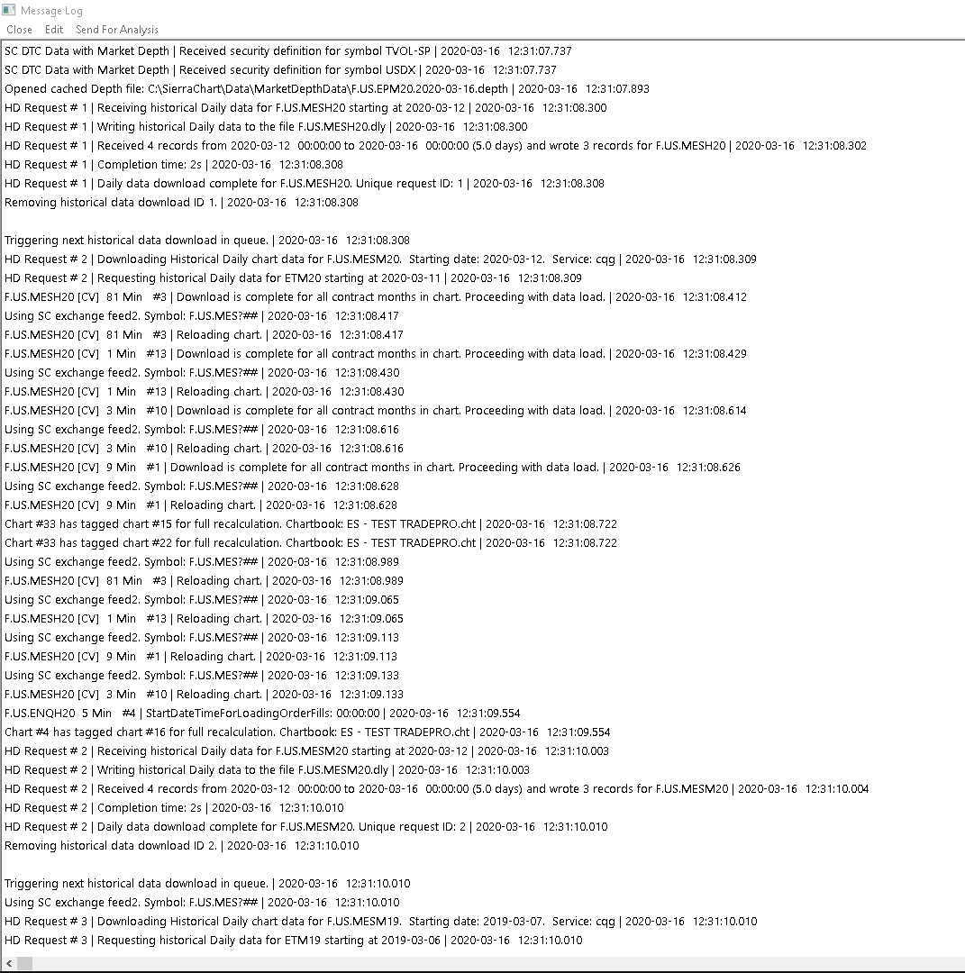 I am unable to do anything with regards to using the Screenshot/Image function. Whole Chartbook and Sierra Chart freezes. I was able to maximize the Message Log before everything froze and I used a snipping tool to capture the entire page of the message log. I think the image is attached. |