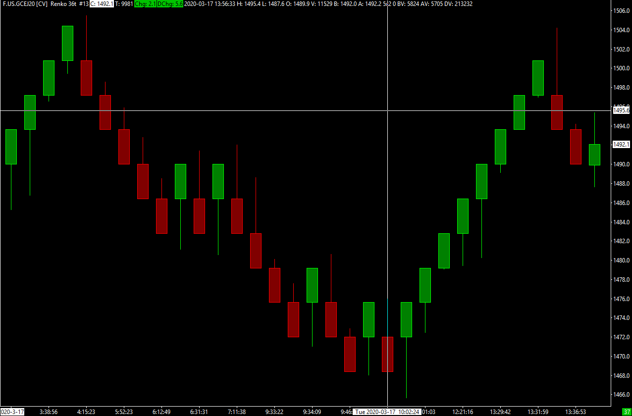 Hi attached is GCEJ20 36 renko bars drawn live and one in hindsight. The lows at 10:57 have different bars in each, can you make them consistent as this affects back-tests. Thanks http://www.sierrachart.com/image.php?Image=1584453444778.png http://www.sierrachart.com/image.php?Image=1584453395834.png |
