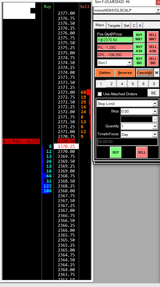 I tried this on my DOM and couldn't get it to work correctly - I will post an image below. I have the order type set as "Stop-Limit" and I clicked on the price 2373.00 on the BID column attempting to get filled as a buy when the market hit this price. Instead, I got filled at BID MRKT price. Please let me know if I am doing anything wrong, thanks.