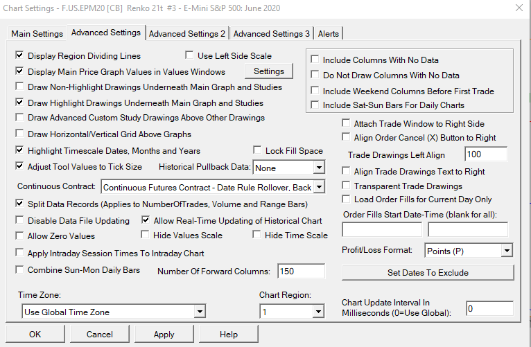 a suggestion that would help people who want to see historical data in the future ... the option chart setting> advanced Settings ... there is an option available to combine the historical data .... this option appears in NONE ... I would recommend that the option of Continuous Futures Contract - Data Rule Rollover, Back Adjusted It would help people how many days they want the data to load |