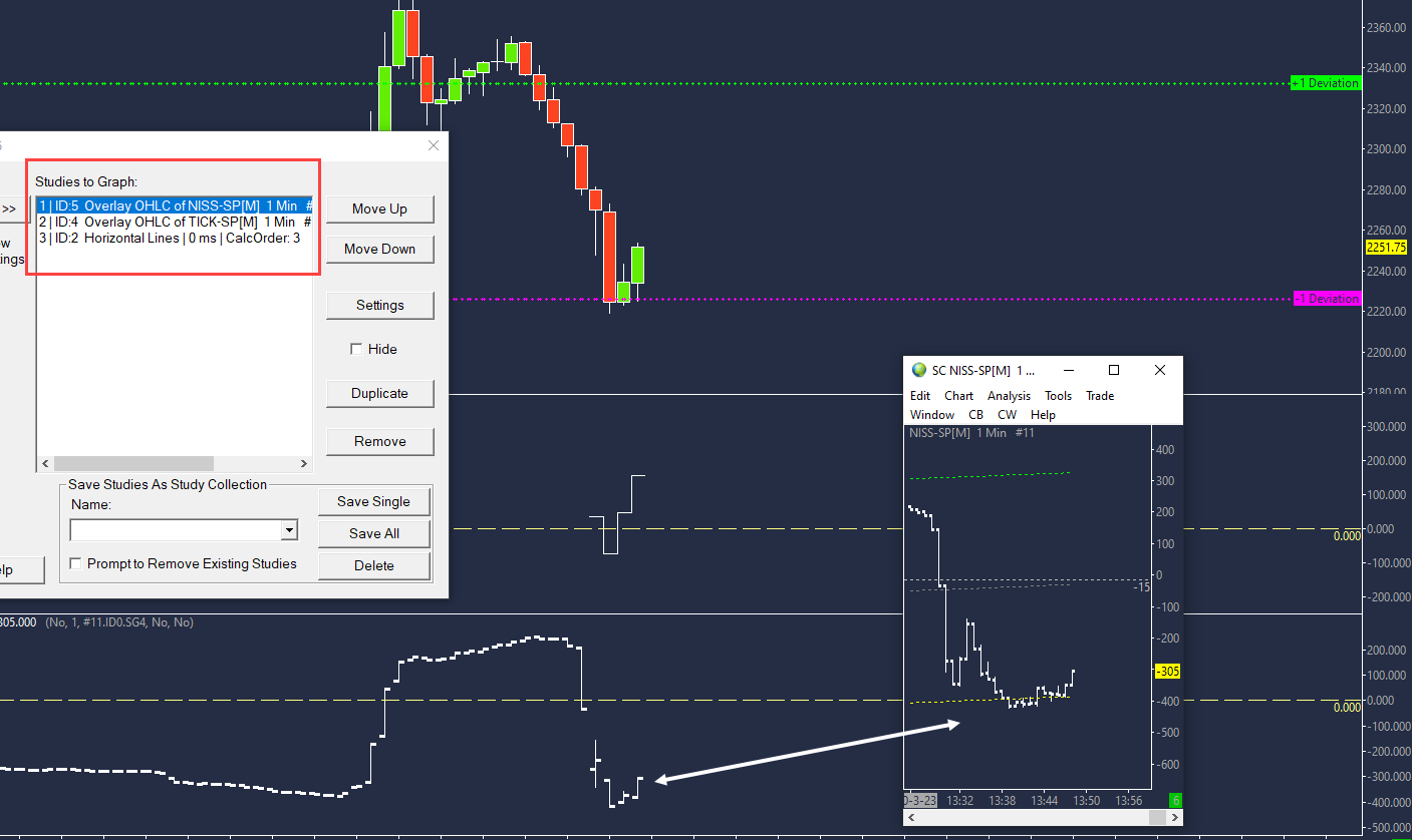 Nope. That doesn't work either. Your documentation says: "This is useful to be able to create OHLC bars for a study to see its range of values during a longer duration bar by referencing the study Line/Subgraph on shorter duration bars." So, is it possible to put a 1 minute timeframe study onto my 5 minute chart without the study resetting to 5 minute? |